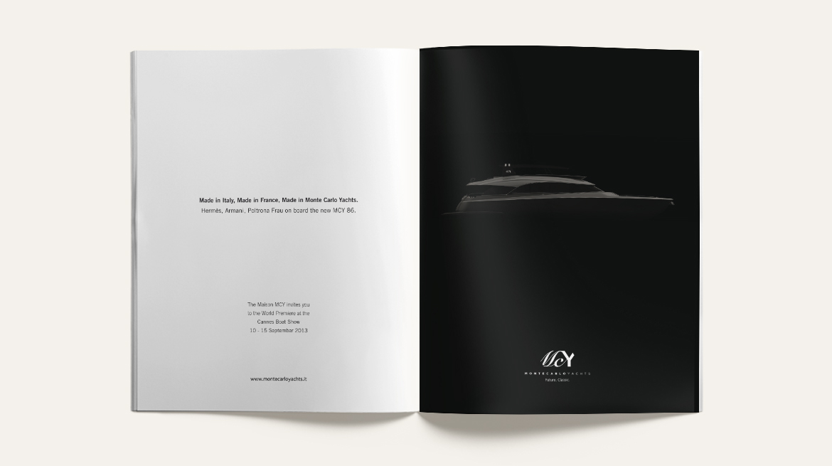 In pochi anni, la nuova società si è distinta come player di rilievo nel settore della nautica di lusso. L'affermazione di MCY e lo sviluppo organico del suo piano di comunicazione si possono ripercorrere nel susseguirsi delle campagne pubblicitarie. Sempre con una forte consistency, gli annunci hanno saputo soffermarsi su specifiche USP: i valori originali proposti dal brand, la sua capacità di definire nuovi standard per il settore, l'eccellenza del suo processo produttivo, il design inconfondibile degli yacht, la speciale relazione che il cantiere intesse con gli armatori.